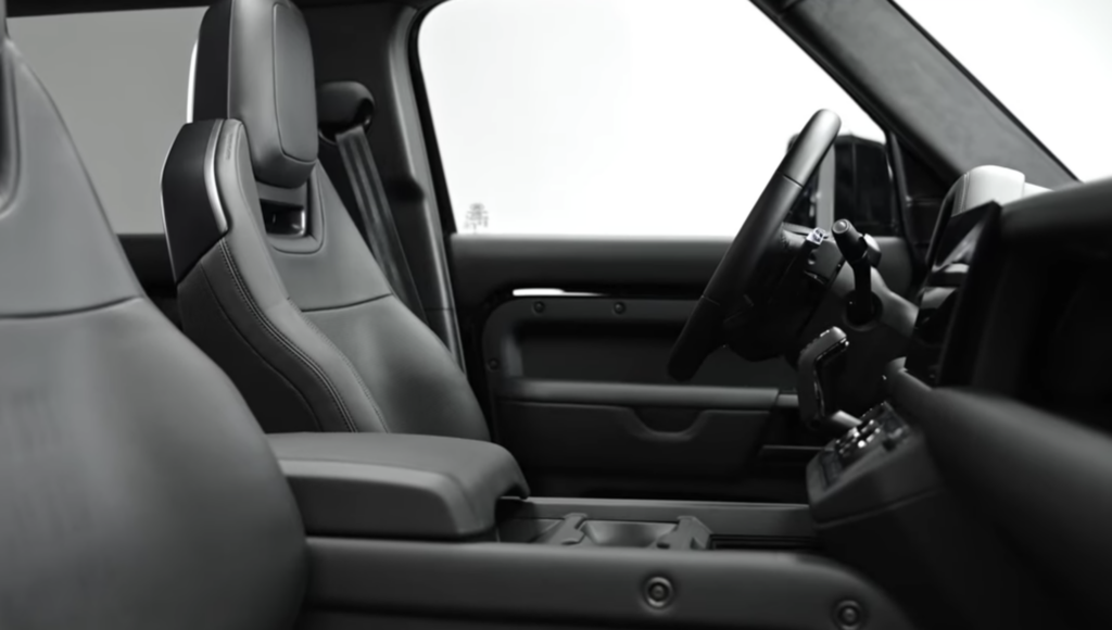 On the dashboard, the dashboard crossbar finish is finished with a coat of Satin Black powder, with an option of fragmented carbon fibre for certain interior details, adding the ultimate touch of rugged luxury.